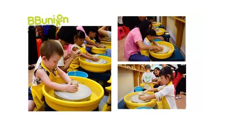 陶艺,是中国传统古老文化与现代艺术结合的艺术形式,是一门综合艺术,经历复杂而漫长的文化积淀历程。与绘画、雕塑、设计、以及其他工艺美术等有着无法割舍的传承与比照关系。9月4日下午,BBunion国际早教惠东中心带领小宝贝及家长来到“一方土”陶艺坊“玩泥巴”,一起感受陶艺的魅力。
